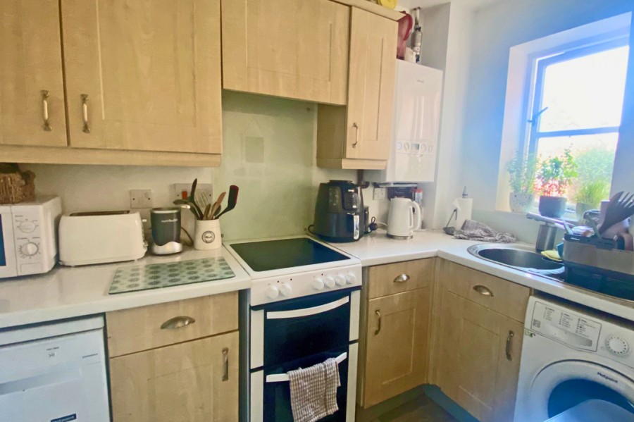 Kitchen: 8'8 x 5'6 A range of storage units with worktops, stainless steel sink with mixer tap, cooker, extractor hood, washing machine, fridge, space for freezer.